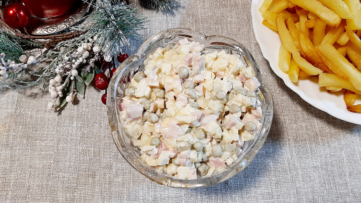 Нашла в телефоне фотографии новогоднего стола, который был собран на скорую руку. Рецепты все простые и известные, но очень вкусные. Эта статья больше для поднятия новогоднего настроения и атмосферы приближающегося праздника. Вы можете поделиться в комментариях своими любимыми рецептами. Это будет очень полезно и интересно. Оливье. Главный на новогоднем столе)). У каждого свой любимый рецепт этого салата, есть свои хитрости. Я не добавляю морковь, не люблю. Хотя с ней салат выглядит ярче. Самое главное, чтобы все ингредиенты были вкусные, тогда салат получится тоже вкусным. Вообще мне нравится готовить такой салат с говядиной. А как готовите вы? Салат с сухариками. Люблю этот салат за то, что его не нужно варить. Салаты вообще лучше не варить))), я про ингредиенты к нему. Закуска на чипсах. Очень быстро приготовить. Чипсы я покупаю в баночке (не в баночке .... вы поняли). Домашние бургеры. Понадобится: Готовим: Заправляем фарш специями, хорошо отбиваем и жарим котлетки для гамбургеро