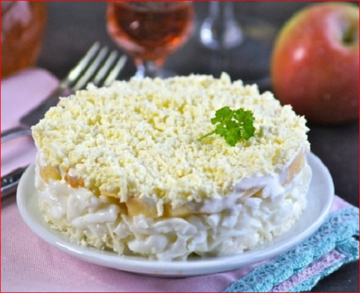 Нежный салат с яблоком и яйцом без мяса. Вкусное, легкое угощение на праздничные дни