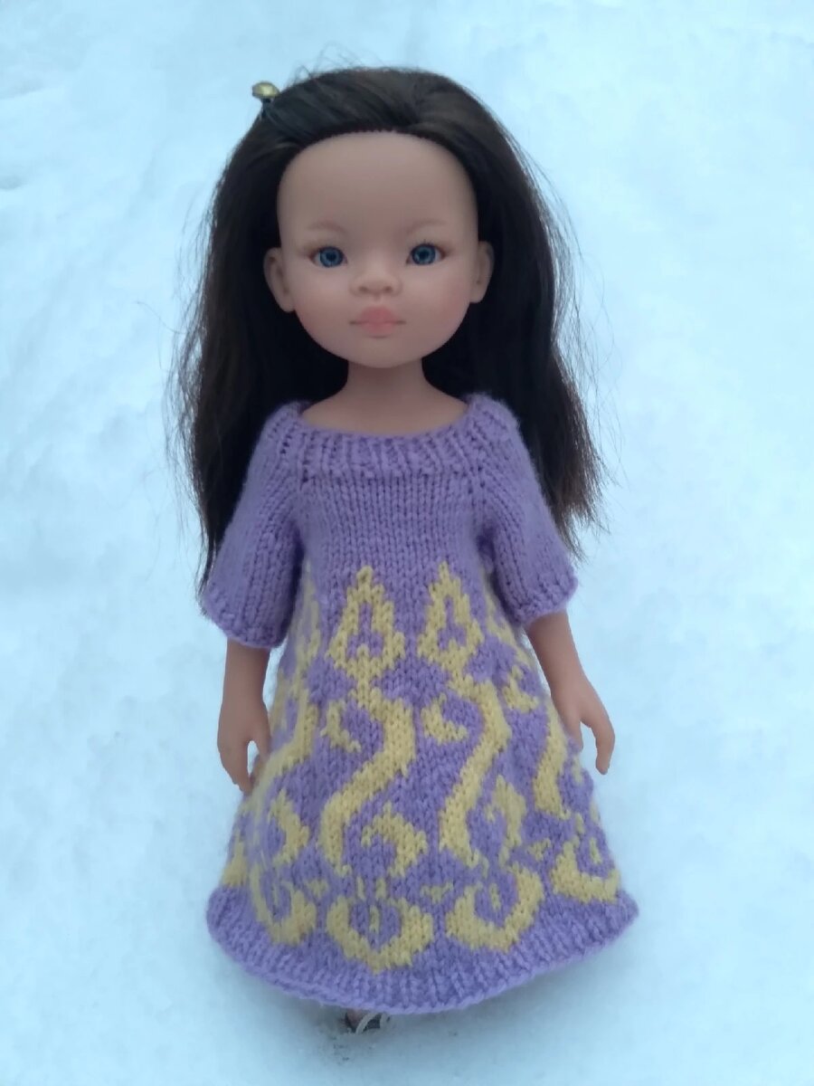 Замечательное платье от Лоры Кузнецовой. ОПИСАНИЕ платья с завитками Мне нравится, что вы вяжете по моим описаниям не на только Паолу Рейна, но и других куколок. Так Ирина Крылова связала тунику на очаровательную малышку. ОПИСАНИЕ туники с высоким горлом Ольга Кальнеус связала по одному описанию сразу двум своим девочкам. И результат великолепный. ОПИСАНИЕ платья с листьями У Светланы Дюковой тоже получилось восхитительное платье.