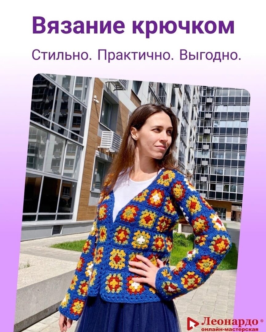 Осваивайте бабушкин квадрат вместе с нами! На сайте mk.leonardo.ru вы найдете много видео-мастер-классов по вязанию. Например, предлагаем связать целых два изделия из бабушкиного квадрата: кардиган и жакет. Ищите здесь: https://mk.leonardo.ru/masterclasses/mclass/86206219994/