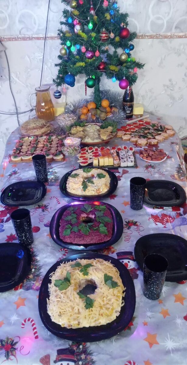 Во-первых в семье двое взрослых мужчин. Во-вторых очень много положила в контейнера на работу. Есть там один мужчина, который всегда ходит с квашеной капустой и варёной картошкой. Жена у мужчины есть. Вот это меня удивляет больше, чем изобилие еды на столе. 1 января не было исключением. Пришёл с капустой и картошкой. Нашу еду ел с удовольствием и нажелал всего хорошего на 50 лет вперёд. Дочь тоже не пошла в гости с пустыми руками. Бутылочка шампанского с собой и всего помаленьку. И это нормально.