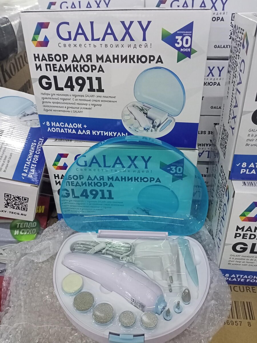 Добрый день, уважаемые читатели. Рада видеть вас на своем канале. Сегодня расскажу вам о своем визите в магазин низких цен Светофор, о новых товарах и поделюсь отзывами на некоторые из них. На полочках магазина появились такие наборы для маникюра и педикюра Galaxy. Набор изготовлен в Китае. В набор входит 8 насадок и лопатка для кутикулы. Стоимость набора составляет 995.90. Интересные наборчики, неплохо будут смотреться в качестве подарка. Электрические сушилки для обуви I-Dry. Производитель Китай. Мощность сушилки 5 вт, цена 199.90. Очень актуальный товар в это время года и цена довольно низкая. Электрические машинки для стрижки Energy. Произведены машинки в Китае. Машинка имеет стальные лезвия, стильный дизайн, 4 сменные насадки, мощность 10 Вт. Цена машинки 491.90. Кварцевые обогреватели Гуд. Китайское производство. Мощность обогревателя 1200 Вт, цена 687.90. Обогреватель такой приобрели в гараж. Работает отлично, быстро нагревает помещение, нареканий по качеству не вызвал. В прода