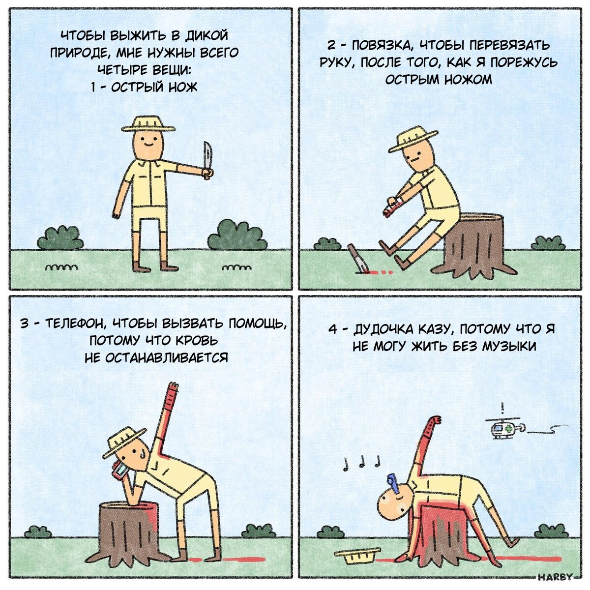 Охарактеризовать комиксы канадского иллюстратора Райана Харби — это довольно трудная задача. Они представляют собой причудливую смесь неловких моментов с странноватых (правильнее было бы сказать «придурковатых») персонажей. Развязки историй частенько бывают настолько нестандартными и неожиданными, что даже трудно понять, о чем вообще идет речь. Но посмеяться есть над чем, и популярность этих комиксов растет. Немного об авторе Художник и писатель Райан Харби хорошо известен в интернете и за его пределами своими комиксами и книгами. Он родом из Канады, окончил Манитобский университет (входит в список 500 лучших университетов мира). После университета сразу же приступил к работе в газетах и рекламном бизнесе. В настоящее время Райан в основном занимается комиксами и выполняет разовые заказы. Среди его заказчиков есть и такие гиганты как Netflix. Жена Лора активно поддерживает деятельность мужа. Она работает библиотекарем. Ее доход небольшой, но стабильный, что важно даже если творческие