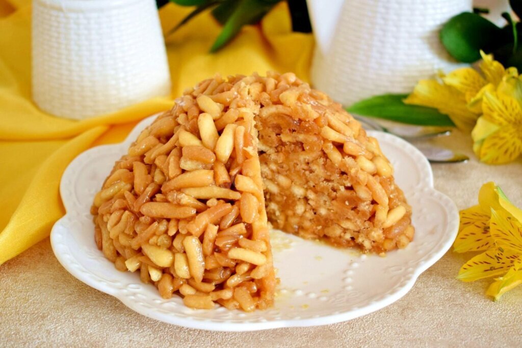 Приветствую всех на своём канале! Сегодня делюсь рецептом тортика под названием "Медовая горка". Я думаю что такое лакомство придётся вам по душе. Этот простой в приготовлении тортик многим напомнит детство. На приготовление "Медовой горки" уйдёт совсем не много времени, а результат превзойдёт все ожидания. Ингредиенты: Яйца 5 шт Мука 370-420 гр Щепотка соли Мёд 250 гр Сахар 1 стакан Растительное масло для жарки Приступим: 1. В подходящей ёмкости смешиваем яйца, соль и просеянную муку. • Муку добавляйте постепенно, может уйти чуть больше или меньше, чем указано в рецепте. Замешиваем тесто по консистенции"как на пельмени ". Сильно тугое не делайте. 2. Готовое тесто убираем"отдохнуть" в пакет минут на 20. 3. Варим заливку. В кастрюле смешиваем сахар и мёд, доводим до кипения и варим 5-7 минут. После этого кастрюлю сразу убираем с плиты!!!! 4. Тесто делим на несколько частей. 5. Раскатываем в тонкий пласт и нарезаем небольшой соломкой. 6. В ковшике или небольшой кастрюле хорошо разогрева