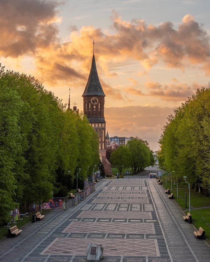 Отдельно стоит остановиться на Кафедральном соборе. Здание построено в готическом стиле и являет собой главный символ Калиниградской области. Точная дата постройки собора неизвестна, однако первое его упоминание в документах датируется 1333-им годом. До начала церковной реформации 16-го века собор являлся главным католическим храмом Кёнигсберга, а затем главным Лютеранским храмом Пруссии. Начиная с 1558-года здесь похоронили много известных личностей среди которых герцог Альбрехт и Имманнуил Кант. Сейчас собор носит имя "Домский собор Богоматери и Святого Адальберта" и используется как музей и концертный зал для органных вечеров.