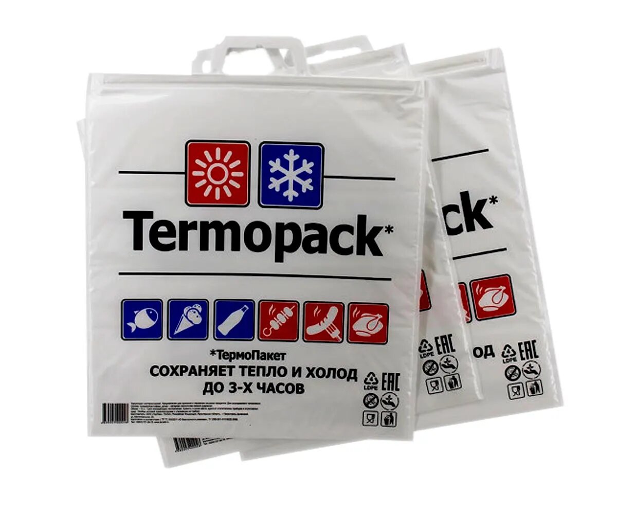 Компания “Профупаковка” предлагает качественные термопакеты по низким ценам. Достоинства таких пакетов в том, что они хорошо сохраняют нужную температуру внутри, выглядят красиво, они не подвержены деформации. Виды термопакетов Термопакет - это упаковка для хранения и транспортировки замороженных, охлажденных или горячих продуктов без потери их первоначального состояния. Для удобства такие пакеты изготавливают с пластиковыми ручками и застежками. Термопакеты имеют многослойную структуру: Такое строение обеспечивает низкую теплопроводность и позволяет замедлить процесс остывания у горячих и нагревания у охлажденных продуктов. Различаются термопакеты по следующим параметрам: Информация о грузоподъемности, вместительности и о том, сколько часов термопакет может удерживать необходимую температуру располагается на пакете. Посмотрите наш ассортимент и розничные цены ↑ Особенности термопакетов Пакеты с термическими свойствами обычно используют для транспортировки продуктов. Они удо