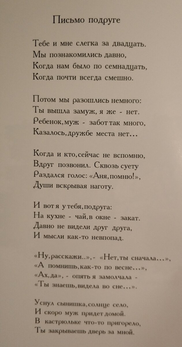 2 января. Без особых гуляний и "хороводов", сегодня немного погуляли, наконец остановился проливной дождь, который шел с 31 декабря, не переставая. Даже солнце выглянуло. Дорогая подруга со студенческих времен обещала позвонить, поболтать. И я вспомнила стихотворение , посвященное ей. Жду звонка, немного бездельничаю, радуюсь покупке новогодних шариков на Вайлдберриз. И радуюсь предстоящим выходным. Всем- мира.