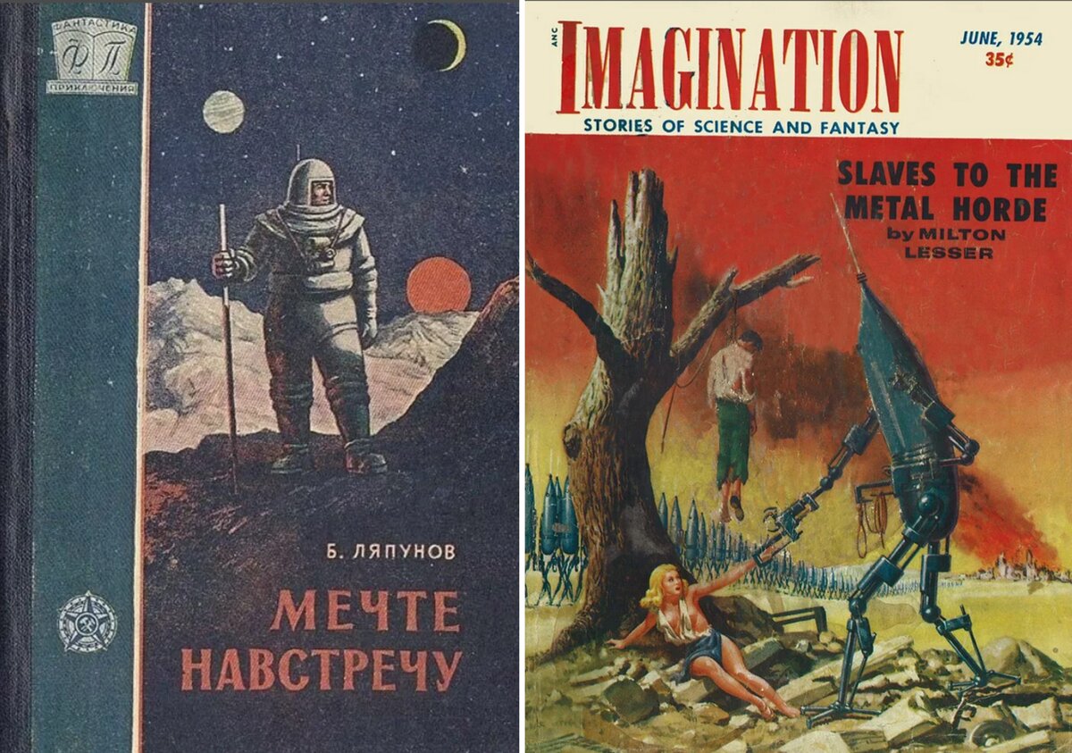 P. S.: Спустя 2 года после публикации этой статьи я сподобился перечитать рассказы Азимова, с упоминания которого начинается эта статья, и пришёл к выводу, что именно его творчество как раз и роднит советскую и американскую НФ. Об этом можно почитать здесь. Впрочем, Азимов это исключение, которое лишь подтверждает правило...