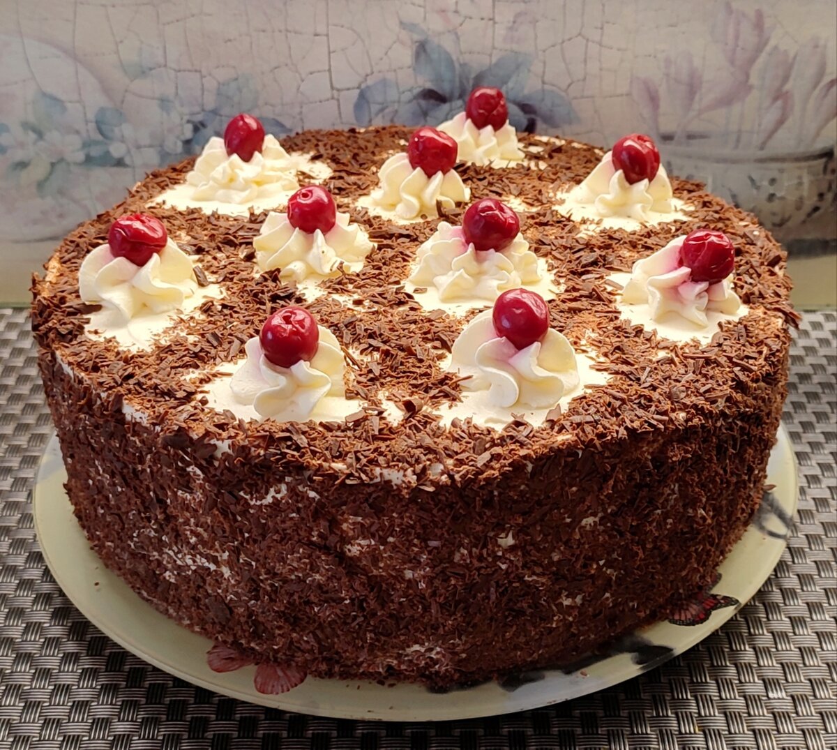 Черный лес, как любой другой именной торт имеет столько вариантов рецепта... Но всегда присутствует вишня и шоколад!