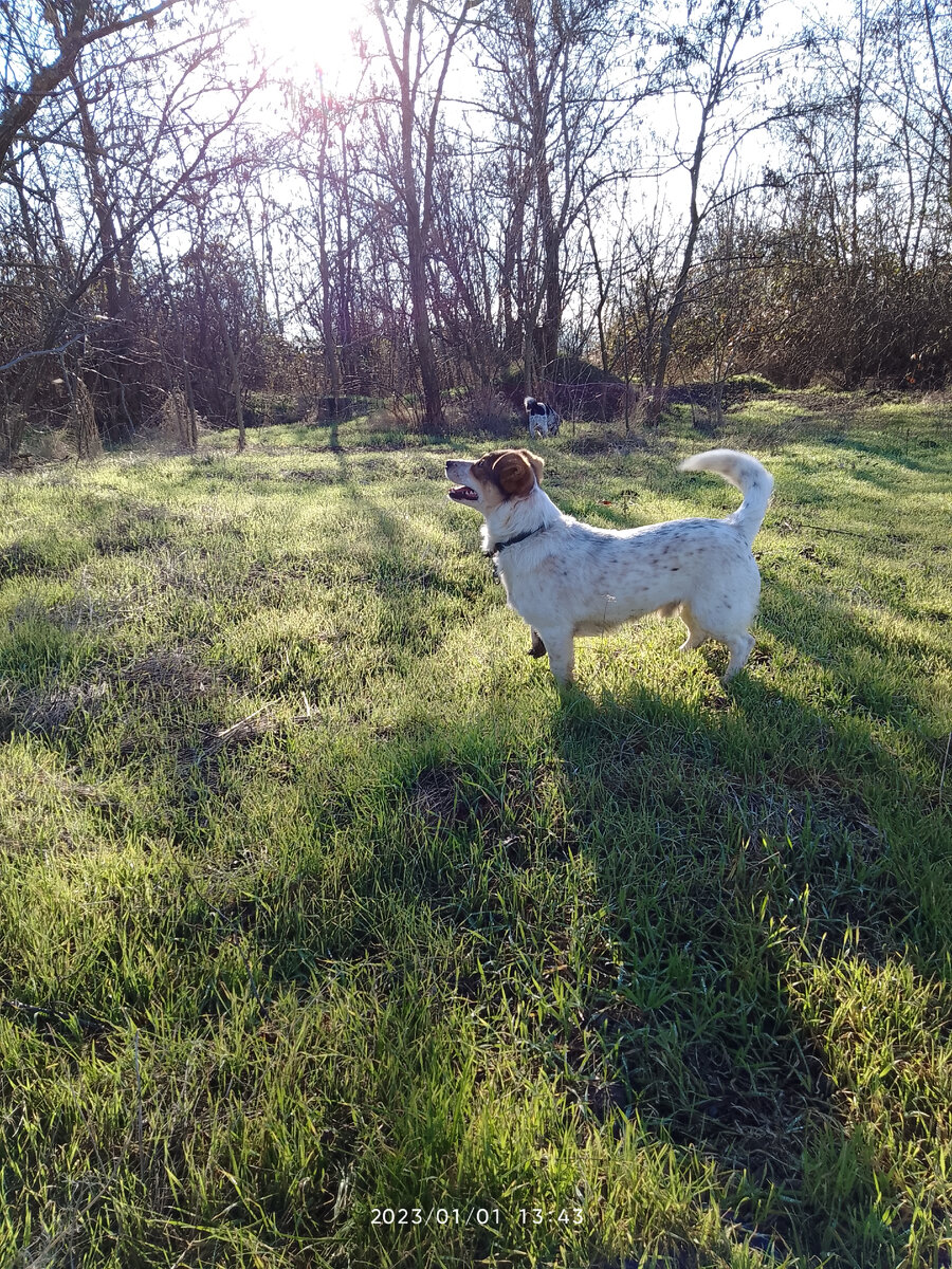 Первый день нового года выдался ясным и тёплым. Чисто весенний день. Хорошо выспавшись и подкрепившись, горячим из вчерашнего, пошли в дальнюю прогулку с собаками. Как же славно на воздухе в такую погоду! Проходя мимо столбиков от лотков ( которые местные жители разобрали на личные нужды) всегда предлагаю Барбосу туда запрыгнуть. Для тренировки. Барбоска не отказывается и очень доволен тем, что угодил хозяйке. Воспользовавшись ситуацией Лоп побежал играть к хозяину. Но во время игры он делает вид, что нападает и это было не правильно. Барбос такого допустить не может - чтоб при нём на хозяев нападали. Пусть и играючи. Но Лоп не трусливого десятка и просто так сдаваться не намерен. Сжавшись и показав Барбосу, что он вот он, лежит и никуда не прыгает в то же время показывает, что у него имеются клыки и в обиду он себя не даст. Вмешаться в ситуацию я не могла по простой причине - если бы я встала среди них то каждый