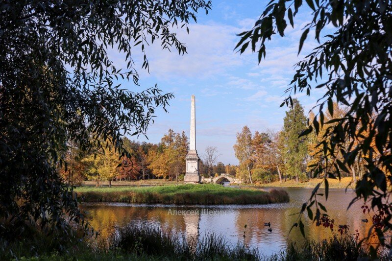 Прогуливаясь по пейзажному парку в Гатчине, мало кто обращает внимание на интересный памятник истории. Недалеко от Гатчинского дворца, на длинном мысе глубоко входящем в Белое озеро установлен обелиск в честь победы русской эскадры в Чесменском сражении, которое произошло в ходе Русско-Турецкой войны. Выполнен обелиск итальянским архитектором Антонио Ринальди в 1775 году. Это самая старейшая постройка парка, выполнена ещё при первом владельце Гатчинской мызы — Григории Орлове. Посвящен победе Алексея Орлова, брата Григория, который командовал эскадрой. Благодаря Екатерине II, памятник вскоре стал фамильным мемориалом Орловых. Статья на сайте — Чесменский обелиск в Гатчинском парке
