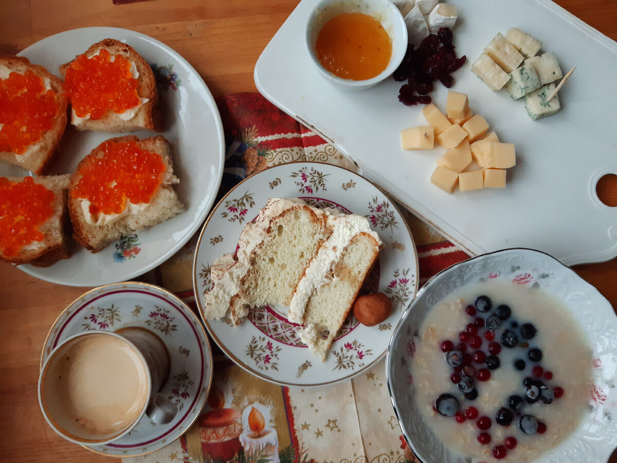 О своих запасах продуктов и планах по бюджету на питание в январе я рассказывала ЗДЕСЬ КАТАЛОГ РЕЦЕПТОВ - здесь все рецепты и полезные статьи по экономии, которые есть на канале сегодня утро начинаем уже с овсяной каши. Потихоньку возвращаемся в будни. Каша со смородиной и брусникой. Но все остальное пока - роскошь от праздника: последние кусочки торта, бутерброды с икрой, сырная тарелка, нарезку еще брауншвейгской колбасы открыли, кофе Вчера после ревизии запасов села и написала сразу меню на неделю. Так гораздо легче жить - открываешь меню и сразу понятно, что из морозилки достать, что нужно (или не нужно) докупить. Я меню составила так, чтобы докупать ничего не нужно было. Если только фрукты закончатся, то за ними пойдем. Утром сразу достала из заморозки рыбу на суп - у меня были запчасти горбуши и кеты, буду из них варить суп. Хороший бульон такой на форели получается, жирненький. Планировала лохикейто - финский сливочный сварить. Стала картошку доставать - а нету! Муж покупал п