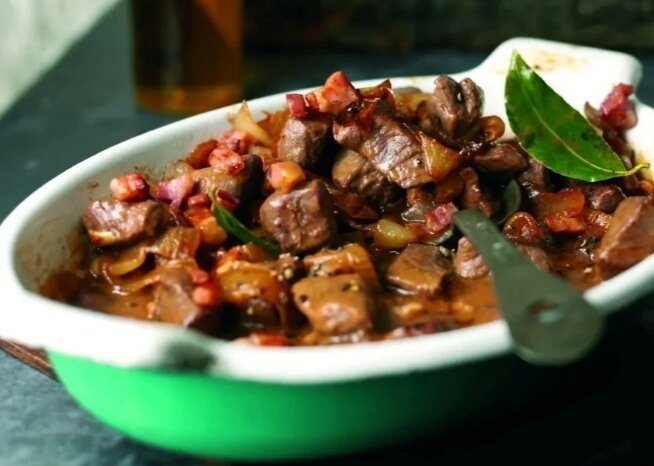 Не пугайтесь, что рецепт дан на такое большое количество человек! Вы смело можете пересчитать его так, как нужно именно вам. Оригинальное сочетание ингредиентов и неповторимый вкус блюда не оставят равнодушным даже самого требовательного гурмана! Ингредиенты: Способ приготовления: В качестве гарнира отлично подойдут обжаренные шампиньоны, свежий салат и, конечно, картофель в любом виде. Приятного аппетита!