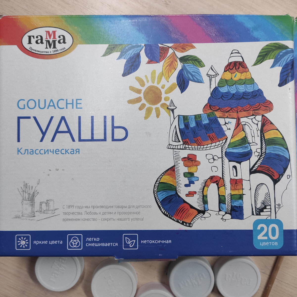 7. Состав гуаши безвредный для детей. Хотя на коробке написано 3+, но я, естественно даю рисовать ею своим девчонкам, наверное, с годовалого возраста.