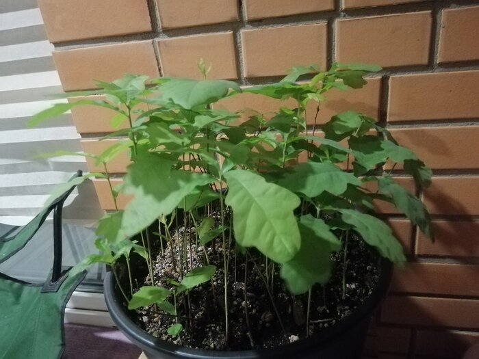 Это я про сына, дом и дерево. Сыновей воспитываю троих, ипотеку плачу, а вот с деревом пока мимо. Пару месяцев назад тут была небольшая волна постов, про то, что кто-то отправлял по почте желуди Петровского дуба. И меня не отпускала мысль, что надо бы тоже с детьми посадить несколько деревьев. Покупать саженцы слишком просто, по этому в начале ноября я привёз детей в парк, где много дубов, в надежде, что ещё не поздно найти желуди. Оказалось, что под прелой листвой очень много уже проросших желудей. С двух квадратных метров мы надергали около 40шт, с корнем и стеблем. Фотки я, разумеется, потерял. Купили в леруа ведро и мешок земли. И вот, что через два месяца получилось: Надо расселять, а на новогодних каникулах и время есть. Вот результат. Три дуба с самыми жирными корнями в горшки, ещё 24 в пивные стаканы. Остальные выкинул. Кстати, прижились почти все, выкидывать было жалко. Так что этой или следующей весной посадим собственную небольшую рощу. Осталось только придумать, где в Ленин
