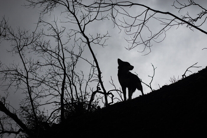 Проезжаю небольшой лагерь рабочих, которые занимаются рекультивацией лесов. Лагерь стоит на вершине небольшого перевальчика и трактор, оставленный на небольшой скале изумительно смотрится на фоне пасмурного неба.