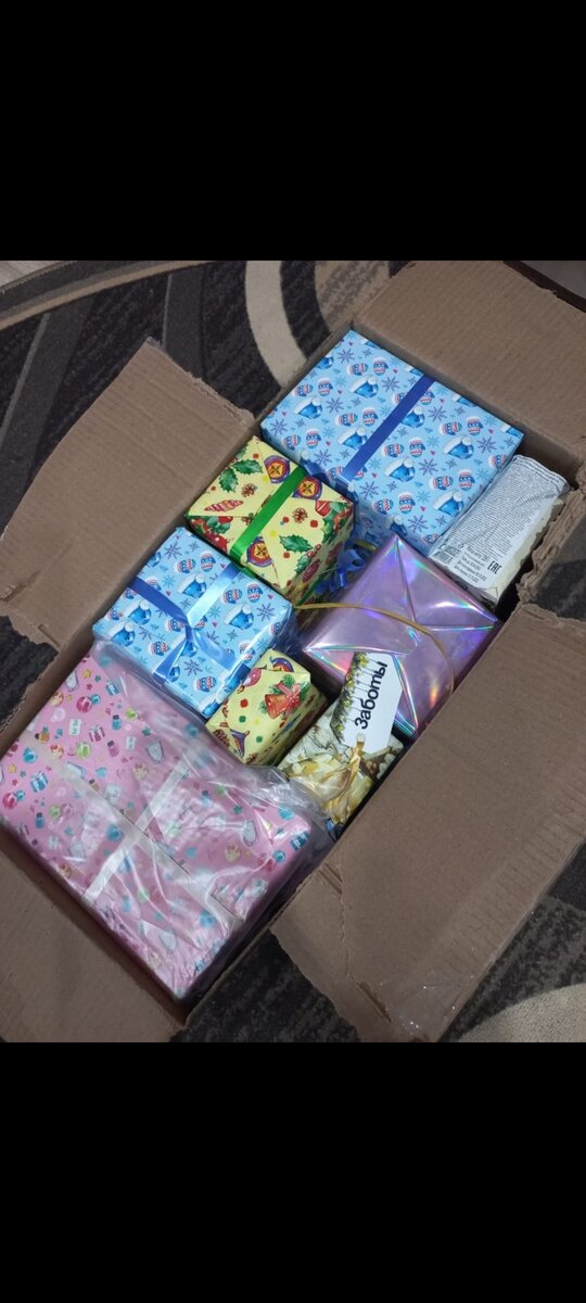 Пиши с большим опозданием, но надеюсь моя снегурочка Наташа и её кролик Мотька увидят мой пост! Итак начну с начала в один обычный, рабочий день мне пришло смс уведомление о том, что посылка отправленна и я не поверела, когда увидела вес, целых 7.3кг!!! Примерно через неделю посылка пришла и я её забрала! Пришла домой и сразу открыла, а там такая красота. Но простите меня моя снегурочка, решили с мужем положить все это красоту под ёлочку 31 декабря, это было сложно, но мы удержались и оставили, чтоб вместе с детками потом все открывать! И вот наступила волшебная ночь и все подарки оказались под ёлкой. Дети были в восторге, честно говоря и мы с мужем тоже! Наша волшебница как будто знала, нас все жизнь, каждый подарок упакован с такой нежностью и забой, и каждый подарок в нашей семье не остался без внимания и каждый подарок именно то, что хотелось бы видеть, но мы лаже и подумать не могли, что будет все вместе и сразу! И так начнём! Свеча у неё просто восхитительный аромат. Носки каждом