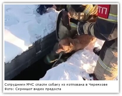 Жители Черемхова в начале января 2022 года рассказали, что на одном из пустырей собака провалилась в котлован и уже 4 дня не может выбраться. Постоянно лает и скулит. Сообщение с просьбой оказать помощь и спасти пса было направлено начальнику пожарно-спасательного гарнизона, который решил проверить информацию и выехал на место.