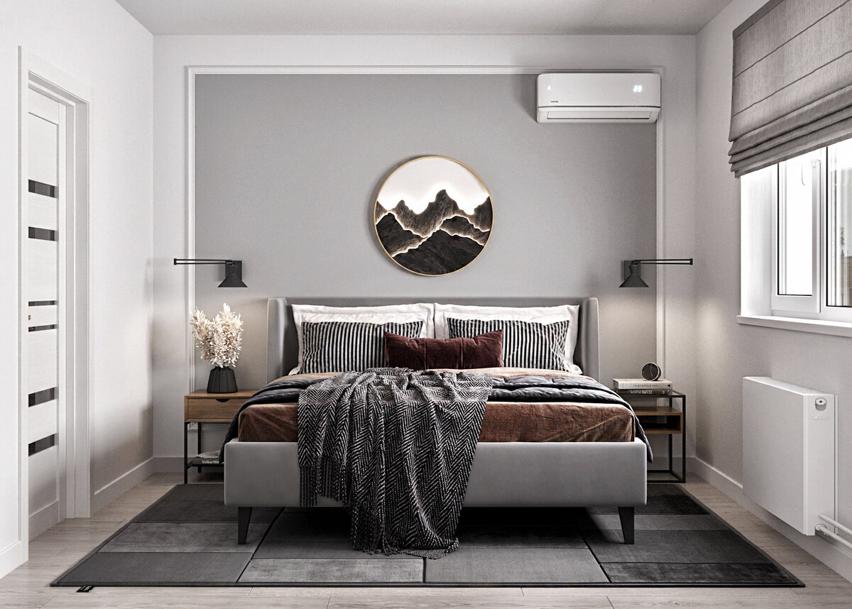 Небольшая лаконичная спальня с интересными деталями от дизайнеров Remplanner.