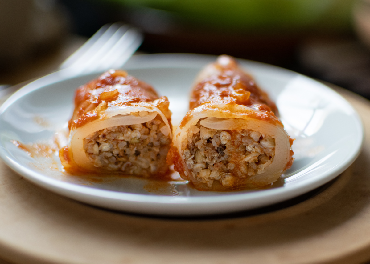Голабки — это польские голубцы, фаршированные приправленным мясным фаршем и рисом, которые подаются с томатным или грибным соусом.