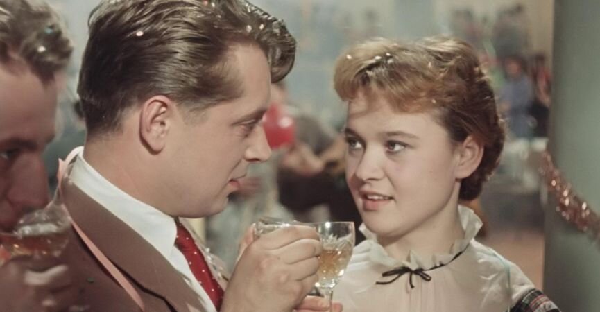 А в момент выхода картины на экраны… успех был сумасшедший! Сделанная за пять месяцев (в то время период работы над полнометражным фильмом в среднем составлял год) картина вышла в прокат 28 декабря 1956-го. Показывалась по всей стране три дня до Нового года. Сразу стало ясно: быть «Карнавальной ночи» лидером проката. Ведь для того, чтобы посмотреть фильм, люди были готовы по многу часов стоять в очереди. Выходили счастливыми и снова шли в очередь – стоять и еще раз смотреть. В 1957 г. «Карнавальную ночь» посмотрели 50 миллионов зрителей.