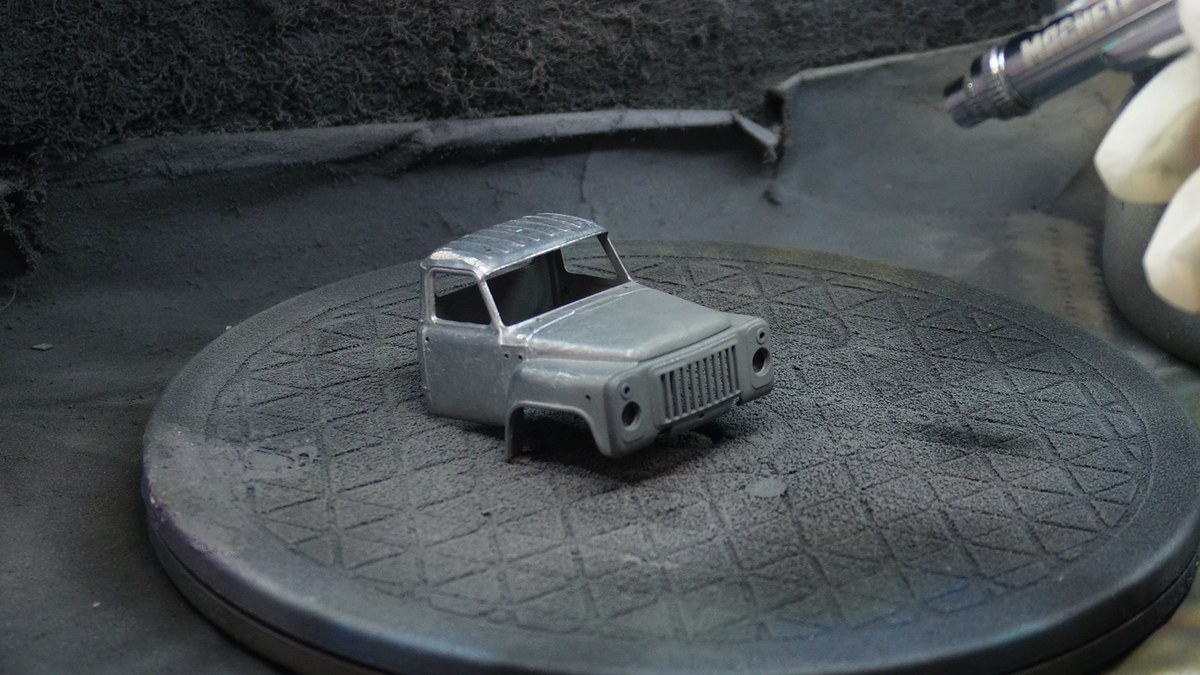 Привет! Я сделала очень редкую пожарную машину из советской глубинки. Я всегда боялась приступать к работе над такими автомобилями, но опыт работы над этой милашкой меня в этом разубедил. Меня зовут Даша, Вы на канале Даша Моделс и сегодня мы строим советский пожарный автомобиль. Начала я работу над моделью со сборки. Модели от AVD собираются весьма просто, тут даже инструкция не нужна. Все детали логичны, единственное, я подсмотрела в инструкцию, когда работала над специальным пожарным оборудованием. Окраску я начала с грунтовки. Конкретно эту модель я буду грунтовать грунтом от Ammo. Он, кстати, неплохо сцепляется и с пластиком, и с металлом. Начну окраску с грунтовки рамы, кабины и пожарной надстройки. Далее я окрашу в черный цвет раму. Для этой цели я использую черную краску от фирмы Jim Scale. У нее присутствует приятный легкий блеск, то, что нужно для рамы. Потом, этим же черным цветом нарисую тени на кабину. Эта процедура служит для двух целей - создание искусственной тени и пре