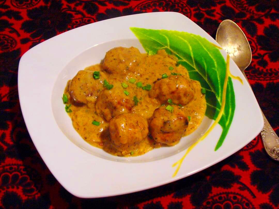 * Для тефтелей - свинина, курица, лук, хлеб, специи. Фарш тщательно выбить. Сформовать тефтельки. Панировать в смеси - панировочные сухари / мука. Обжаривать со всех сторон, на смеси сливочного и растительного масла. * Соус - В сотейнике распустить сливочное масло. Лук нарезать мелко. Обжарить лук, до готовности. Добавить муку, тщательно размешать и обжарить. Постоянно помешивая луково - мучную смесь, постепенно добавить молоко, специи. Варить, помешивая, на слабом огне, 5 минут. Лук репчатый - 1 шт, Сливочное масло - 1.5 ст ложки, Мука пшеничная - 1 ст ложка, без горки, Молоко топленое - 250 гр, Соль, перец черный свежемолотый, Мускатный орех - на кончике ножа, Приправа " весенняя зелень" - 1/2 ч ложки. * В готовый соус ввести тефтели, и прогреть 5 минут. Подавать с большим кол - вом соуса. Приятного аппетита!