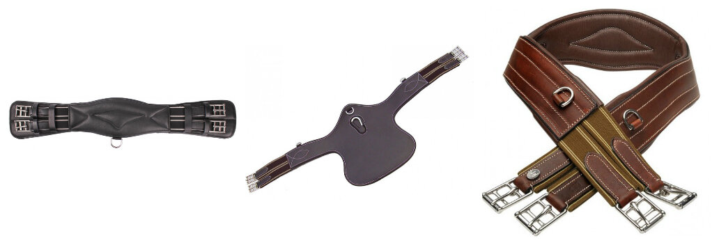 Б. Контурная (анатомическая) подпруга для лошадей с правильным строением и зоной месторасположения подпруги, что позволяет подпруге занять естественную позицию и не мешать локтям.