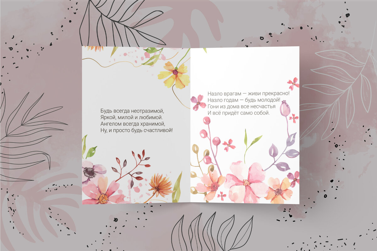 Поздравление жены или девушки с Днём Рождения. В открытке применяется цветочное оформление и тона самых разных цветов. Заказать такую открытку или другие продукты нашей типографии можно на сайте: https://trt74.ru/catalog/otkrytka Разворот открытки Обложка и общий вид Картинка с поздравлением для соц.сетей Текст поздравления для удобного копирования: Будь всегда неотразимой,