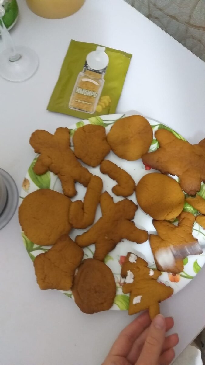 Всем привет . Сегодня я вам расскажу как приготовить имбирные пряники. Имбирные пряники - это очень вкусное угощение на стол в Новый год и в Рождество. А ещё имбирные пряники подойдут для постоянного поедания. Мне очень понравилось это блюдо. Теперь пеку его каждый день. Вот как выглядят имбирные пряники до украшения глазурью А здесь я уже украсила имбирное печенье. Так вот сейчас расскажу вам рецепт очень вкусных имбирных пряников. РЕЦЕПТ После того как положили все ингредиенты в кастрюлю и поставили на огонь, мешаем. После того как все растворилось убираем с огня и добавляем 1ч.л. соды и перемешиваем. Остужаем и добавляем 1 яйцо и один желток, а белок оставляем он понадобится для глазури. Мешаем. Выливаем в миску и добавляем 400гр муки. Добавлять нужно постепенно мешаем. И убираем в холодильник на 30 или 60 минут. Потом достаём из холодильника и делим те то на части. Раскаываем и прикладывать формочки Я использовала формы ёлки, имбирного человечка и сахарную