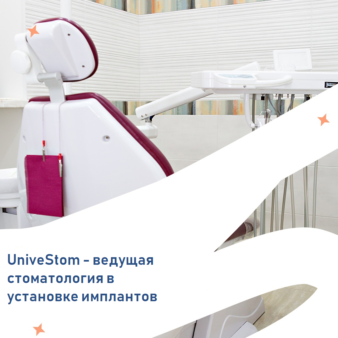 UniverStom действительно является одним из явных лидеров в такой стоматологической сфере как установка имплантов. Говорим мы это не ради красивых слов, подтверждением тому является большое количество пациентов, которое обращается к услугам нашего Центра. И такое внимание к UniverStom лестно для нас. В свое время мы установили довольно высокую планку, и касается это абсолютно всех составляющих нашей работы: в штате Центра имплантации состоят только лучшие специалисты, которые имеют большой опыт успешной работы; используются только самые современные материалы и оборудование, что позволяет гарантировать нашим пациентам 100%-ный результат. В нашем Центре можно пройти все этапы от начала и до конца без необходимости обращения в сторонние организации и к другим специалистам. Важно рассказать и о том, что, несмотря на столь богатый опыт наших имплантологов, они постоянно повышают свою квалификацию, что имеет документальное подтверждение в виде сертификатов и дипломов о прохождении соответству