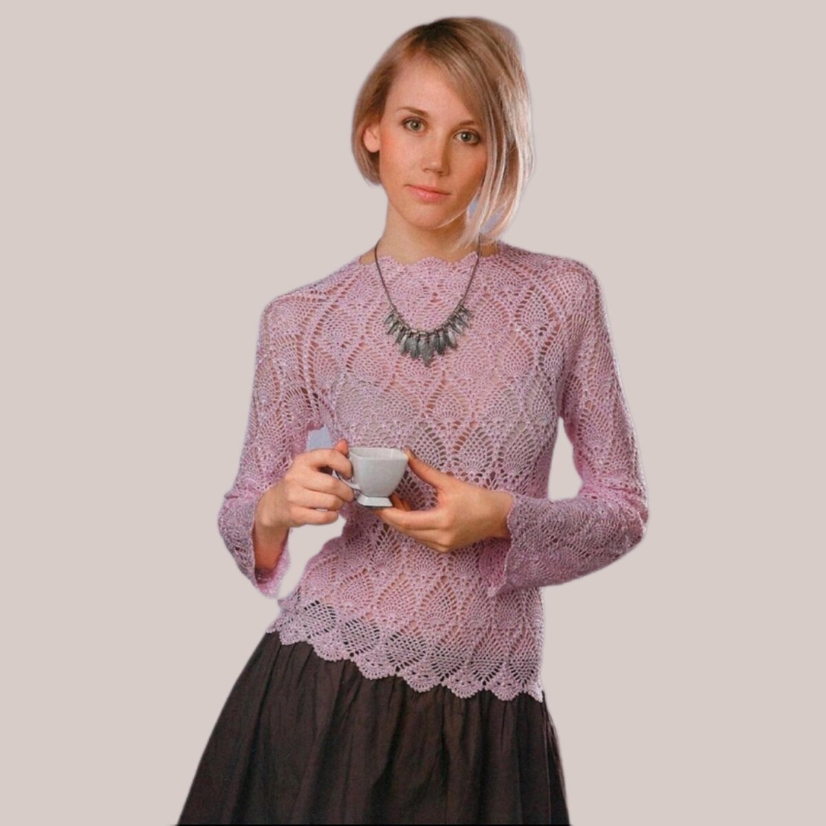 И так, давайте рассмотрим несколько различных моделей, а конкретно блузу, топ, 2 платья и юбку которые связаны этим классическим и ажурным узором.