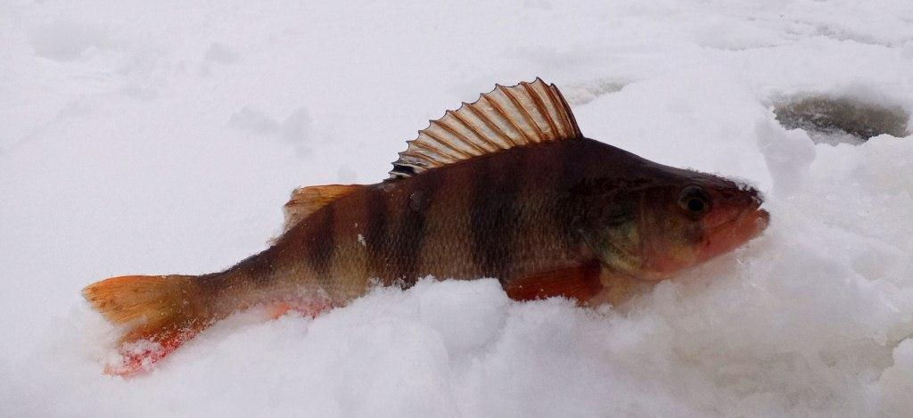 Окунек сегодня был в «настроении», и начал отзываться уже со второй лунки. Обловив лунки, поймал полтора десятка рыб до 150 грамм весом. Сверлю новую серию лунок, и уже с них беру хорошего «горбача» и попадаю на «лифт». С одной лунки беру подряд с десяток хороших окуньков. Поклевки решительные, с ударом. Красота! Перехожу на следующую, через минуту здесь следует хорошая потяжка, подсечка - есть! Резко треснул тормоз катушки, щука? Да, она! Немного потрепала мне нервы, делая различные «пируэты» под лункой. Все эти «качели» были в мою сторону – под жабры беру щучку за килограмм весом. Нормальная рыбина!