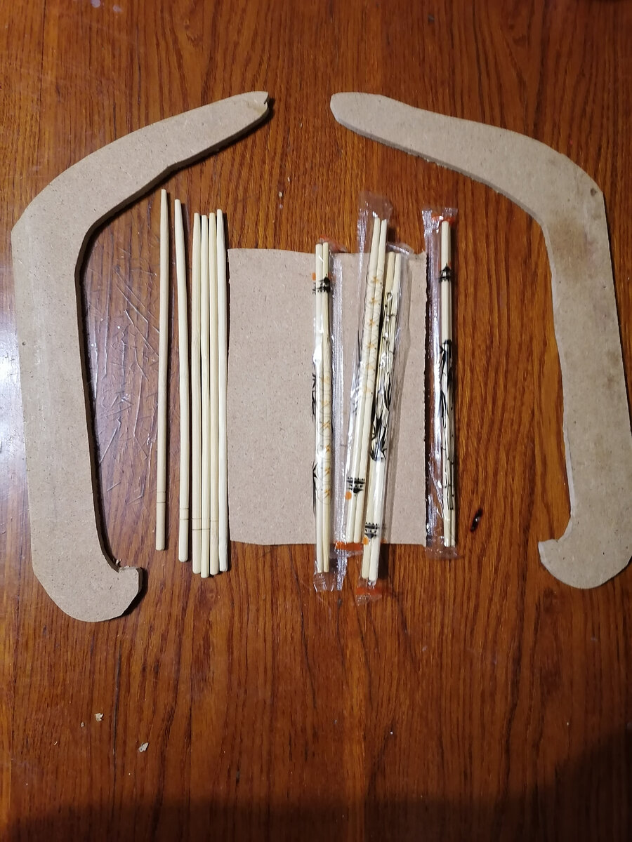 Здравствуйте, продолжаю тему поделок на Новый год. Для саней взяла МДФ и палочки для суши. Боковые стороны и спинку выпилила из МДФ. Подготовила выемки и дырочки для низа саней. Закрыла низ саней палочками для суши, приклеила на пва. Для, украшения взяла заготовки из пластика. А вот сиденье и перед саней сделала из гофрокартона. Обклеила бумагой и покрасила серебряной краской.