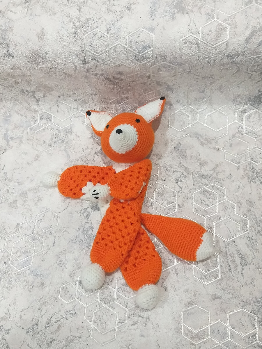 Комфортер Лисёнок Игрушку комфортер кладут маленьким деткам в кроватку. Перед этим мама какое-то время носит её на себе, чтобы игрушка пропиталась запахом мамы. Рост Лисёнка 30 см, при его изготавлении использованы гипоаллергенные материалы: акриловая детская пряжа и синтепух; глазки на безопасном креплении.