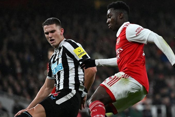 Игра первой и третьей команд АПЛ получилась закрытой и завершилась закономерной ничьей. «Ман Сити» в случае победы над «Челси» сократит отставание до пяти очков. НОВЫЕ ТОПЫ АНГЛИИ Мог ли кто год назад подумать, что матч с участием «Арсенала» и «Ньюкасла» получит приставку топ и станет первым таковым в 2023-м? Однако именно эти команды окружили расположившийся на второй строчке «Манчестер Сити». Причем «канониры» встретили Новый год аж в семи очках от главного преследователя «горожан», а «сороки» - в двух (правда, при матче в запасе). Команда Микеля Артеты прошлой осенью выиграла в АПЛ все домашние матчи, и в этом пытаться продолжить победную серию наставник отправил привычный состав с Александром Зинченко на левом фланге обороны, Мартином Эдегором в средней линии и Букайо Сака в нападении. Для статуса «оптимального» этому составу не хватало только травмированного Габриэла Жезуса, вместо которого на острие вышел Эдди Нкетиа. Эдди Хау тоже было особо не на что жаловаться. Да, у него спис