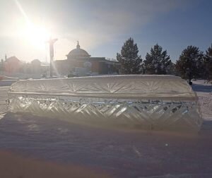 Материалом для большей части скульптур стал снег, однако гроб выполнен полностью из льда.
