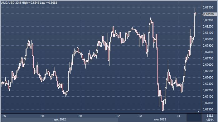 График курса австралийского доллара к доллару США интервалами в 30 минут
