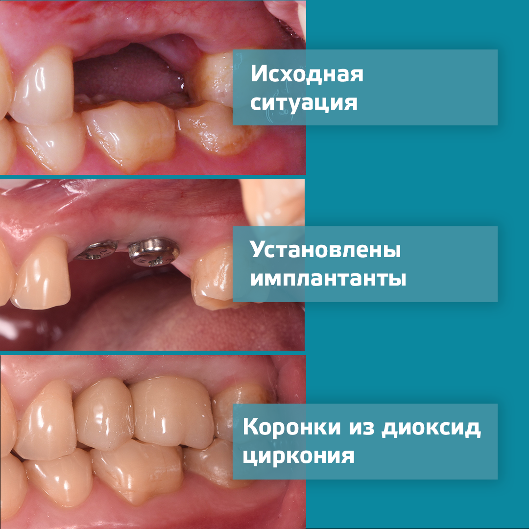 — По окончании периода заживления Александр Юрьевич Кондусов установил две циркониевые коронки