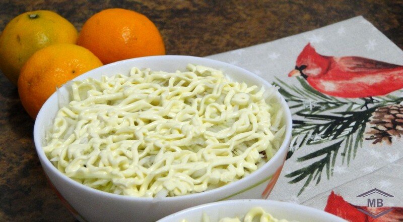 Любимый слоёный салат “Морское дно” готовлю на семейные торжества! Насыщенный вкус, гармоничное сочетание ингредиентов полюбит стар и млад! Ингредиенты: 280 грамм морской капусты, 200 грамм крабовых палочек, 3-4 яйца, 1 -2 головки лука, 1 консервы скумбрии в масле, 300 грамм свежей капусты, майонез – для промазки слоёв. Процесс приготовления: Салат можно подавать на общем блюде или порционно. Морскую капусту нарезаем мелко и выкладываем ровным слоем на тарелку. Вкуснее получается, если брать морскую капусту с морковью по-корейки. Поверх капусты – покрошенную головку лука. Можно в салат добавлять замаринованный лук. Далее идёт слой из крабовых палочек, нарезанных кубиками. Этот слой промазываем майонезом. Теперь очищаем от кожуры отварные яйца и нарезаем кубиками. Выкладываем слоем на крабовые палочки под майонезом. Открываем консервы и руками измельчаем рыбу, удаляя хребет. Для салата уместны будут консервы горбуши, тунца, сардинеллы. Капусту натираем на тёрке и разминаем руками, что