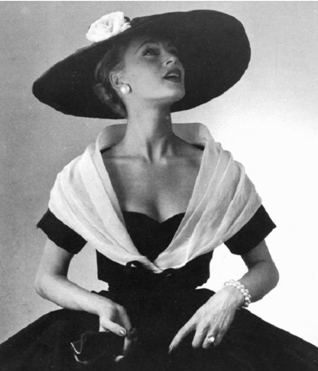 Шляпка и туфли - этот обязательный дуэт задавал тон всему наряду модницы эпохи 50-х. Остроносые туфли непременно были на каблуке, который становился все длиннее и тоньше, потом превратился в каблук - шпильку. Коллекции Диор, как и Роже Вивье. Он, как и сам Диор не боялся экспериментировать: например, адаптировал мюли, туфли ботильоны, популярный при дворе французских королей в 18 веке, к современности, или наряжал женщин в сандалии в африканском стиле. А вот среди шляпных дел мастеров признанных мэтров не было. Чаще всего шляпки для своих коллекций придумывали сами дизайнеры, причем шили их из той же ткани, что и платья. Куда оригинальнее выглядели головные платки, которые внезапно стали невероятно популярным аксессуаром: рисунки для них создавали самые востребованные художники по ткани.