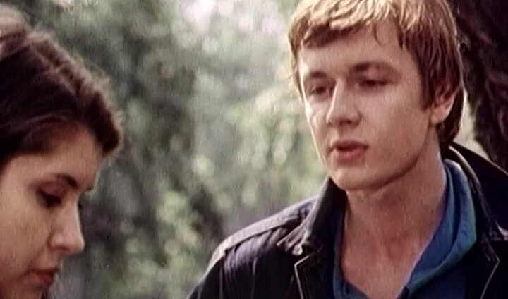 Вот характерная для общей трактовки образа сцена. Николай сидит в своей комнате, снизу доверху увешанной рекламными плакатами западных «поп-идолов». В одной руке у него — книжка на английском языке (парнишка-то не без способностей!), в другой — заграничный ножичек с выдвигающимся лезвием. На лице шаловливо блуждает самодовольная улыбка…