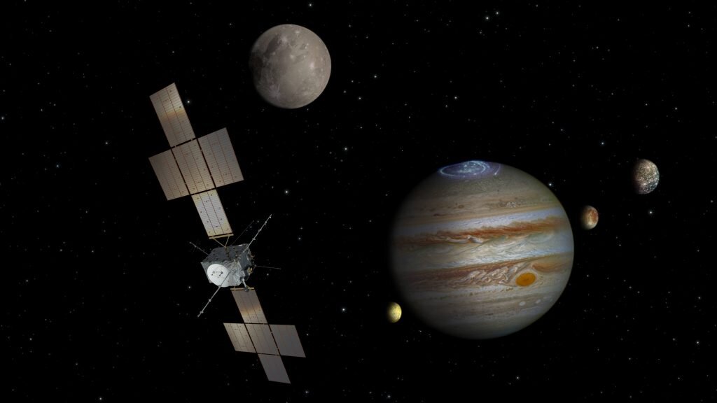 Ее планировали запустить в 2022 году, но запуск перенесли на 2023. По плану, миссия JUICE изучит три естественных спутника Юпитера — Ганимед, Каллисто и Европу. Цель — понять, может ли на этих лунах обитать жизнь. Считается, что там жидкая вода. Планируется, что JUICE выйдет на орбиту Юпитера в 2031 году, а уже в 2032 году он станет первым космическим кораблем, который выйдет на орбиту луны другой планеты, когда долетит до Ганимеда.