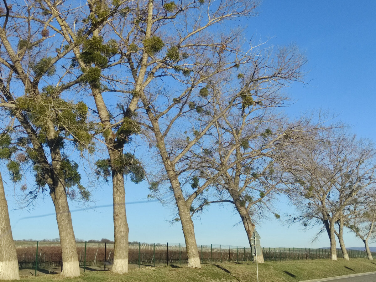 Позже я поняла, что это какое-то растение-паразит, а ещё позже нашла ответ в интернете — омела белая. Что я знала к этому моменту об омеле? Что в Европе из омелы делают рождественские венки и шары, что под ней целуются влюблённые. Пожалуй, всё.