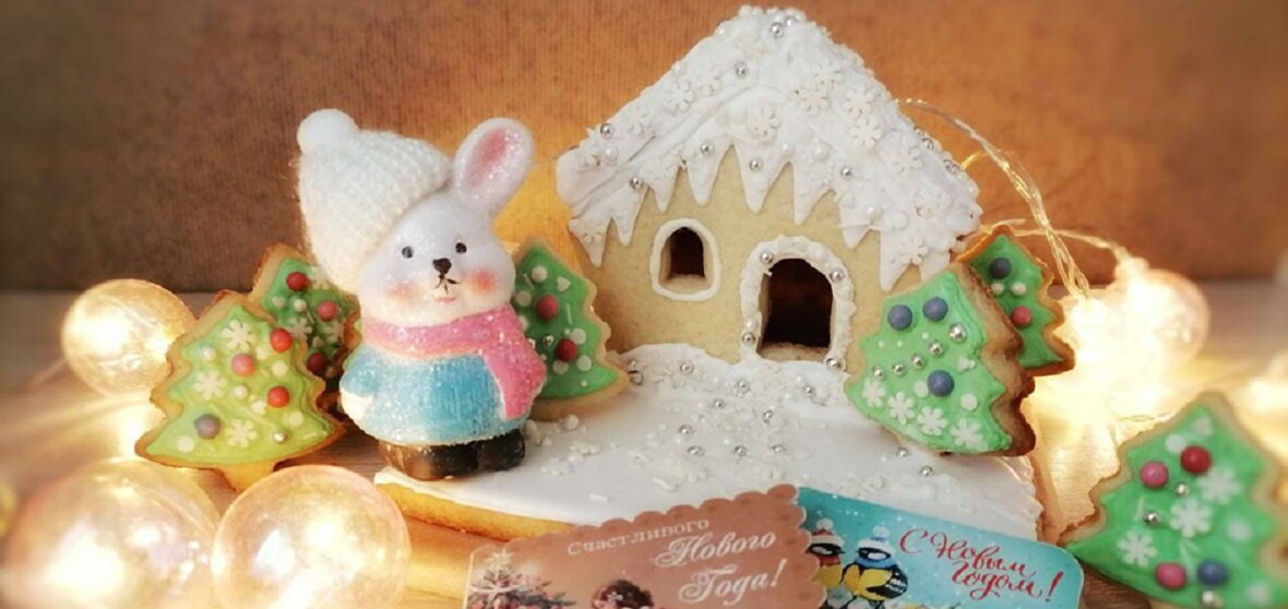 Праздничная выпечка: домик из песочного печенья с глазурью