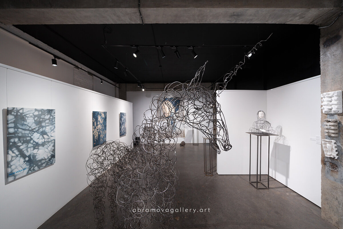 Центральный объект выставки «Бегство в вечность» — огромный единорог в узнаваемой авторской технике. Призрачный контур создаёт эффект «отсутствующего присутствия», так что скульптура внушительного размера не выглядит тяжеловесной, а растворяется в пространстве, наполняя его своей волшебной силой. В Средние века считалось, что встретить Единорога — большая удача, поэтому это мифическое существо старались помещать на фамильных гербах. Удивительно, что изображение этих животных встречается в разных уголках мира. Единорог, согласно задумке автора, переносит нас в параллельный мир, где мы можем черпать силы и вдохновение. Магические создания, очищенные от розового налета поп-культуры, словно проводники света, наполняют экспозицию. Традиционный для классической скульптуры воинственный образ коня в руках Антонины Фатхуллиной становится сомасштабным человеку и эмпатичным. Многие сюжеты в творчестве Антонина Фатхуллиной раскрываются как драгоценные элементы памяти, как нашей собственной — предс