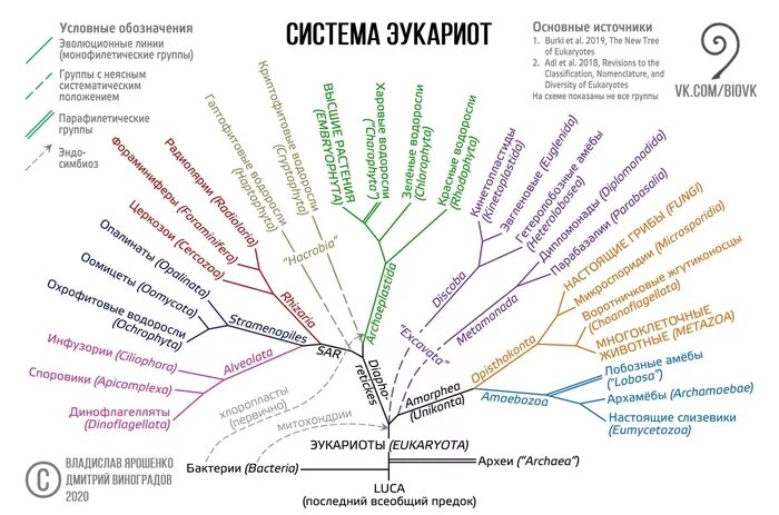 Это наталкивает на интересные размышления: мы, многоклеточные животные, по родству ближе всех к воротничковым жгутиконосцам ( у которых жгутик не спереди, как у всем известной эвглены, а сзади), но наши иммунные клетки имеют потрясающие сходства с амёбообразными. Учитывая, что наш последний общий предок с амёбами существовал около миллиарда лет назад, можно предположить, что во времена образования многоклеточности (коло 800 миллионов лет назад) произошел очередной симбиоз разных одноклеточных организмов. Например, колония жгутиконосцев стала активно сотрудничать с амёбоподобными, которые чистили её от бактерий (не специально, конечно, просто пожрать любили). Такая кооперация дала огромные преимущества и тем, и другим, потому позднее клетки объединили геном. Кстати, и симбиоз, и объединение генома - обычная в эволюции практика, первый раз что-ли? Вон, до сих пор "прирученные" бактерии в виде митохондрий снабжают наши клетки энергией. И большая часть генетического материала митохондрий уже давно перекочевала в геном хозяйской клетки. Да, в вашем геноме есть ДНК этих древних бактерий. И, возможно, даже слизевиков. Но это не точно:)