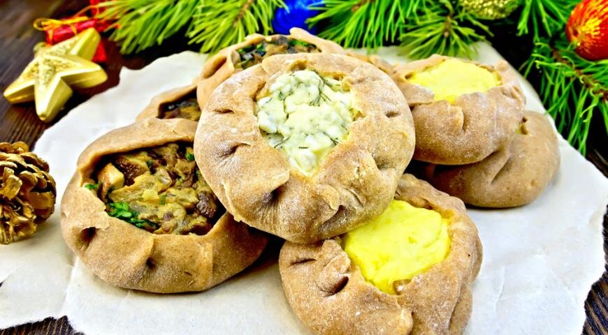 Чтобы прослыть знатоком национальных традиций и завоевать сердца гостей и близких, на Рождество испеките из смеси ржаной и пшеничной муки (1:1) с добавлением любой жидкости (вода, молоко, простокваша, сметана) пресные пирожки – колядки.