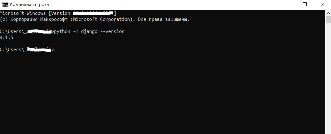 Для начала проверьте какая версия Django установлена на вашем компьютере, для этого в Командной строке впишите код: