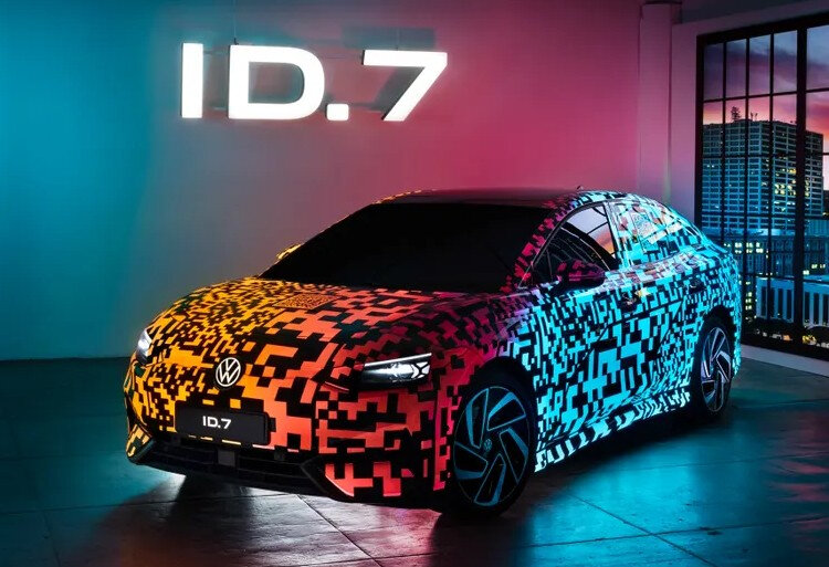 Немецкий автопроизводитель Volkswagen впервые продемонстрировал публике ID.7 — свой грядущий электрический седан, официальная премьера которого состоится уже в ближайшие дни в рамках выставки CES 2023 в Лас-Вегасе, США. Новинка пока демонстрируется в необычном люминесцентном камуфляже. Первым, что привлекло внимание публики, оказалось необычное светящееся оформление кузова в стилистике QR-кода, состоящее из порядка 40 слоев токопроводящей и изолирующей краски. Применяется механизм электролюминесценции. При этом кузов автомобиля разделен на 22 независимые зоны подсветки, синхронизированные со штатной аудиосистемой. Также в рисунок оказались «вшиты» действующие QR-коды, предоставляющие дополнительную информацию об автомобиле. Общий дизайн седана вполне укладывается в принципы семейства, сформированные под влиянием концепции ID.Aero, поступающего в продажу в середине этого года и призванного заменить собой Passat. Колесная база автомобиля, построенного на модульной платформе MEB, составля